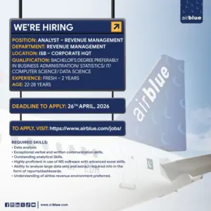 The Analyst – Revenue Management role at Airblue is a perfect opportunity for individuals who enjoy working with data and want to enter the aviation industry.