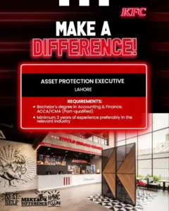 If you have a background in finance, accounting, or audit and are looking to build your career with a globally recognized brand, this opportunity at KFC could be a great fit. The company is currently hiring for the position of Asset Protection Executive in Lahore.