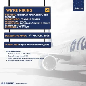 Airblue has announced an exciting career opportunity for the position of Assistant Manager Flight Training. This role is based at the company’s Training Center located at the airport in Karachi.