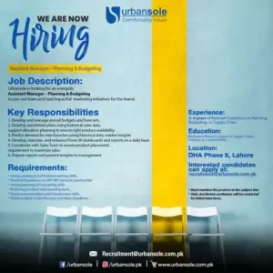 If you have a strong grip on numbers, forecasting, and business planning, this opportunity could be a solid step forward in your career. Urbansole is currently hiring an Assistant Manager – Planning & Budgeting for its office in DHA Phase 8 Lahore. This role is ideal for professionals who enjoy working with data, coordinating across teams, and influencing business decisions through insights.