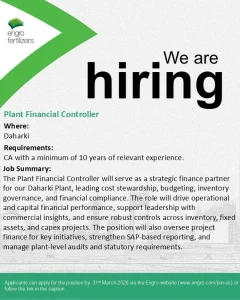 The Plant Financial Controller position at Engro Fertilizers is a senior and strategic finance role, perfect for professionals looking to make a significant impact on operational efficiency and financial performance. With its Daharki plant operations, Engro provides a platform for finance leaders to grow, innovate, and lead with integrity.