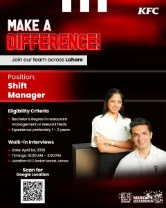 KFC, one of the world’s leading quick-service restaurant (QSR) brands, is inviting enthusiastic and motivated professionals to join their team in Lahore as a Shift Manager. This is an excellent opportunity for candidates looking to grow their careers in restaurant management while being part of a fast-paced, customer-focused environment.